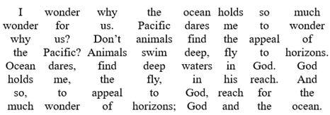 This poem was blocky and not very aesthetically pleasing, but I was still encouraged and a little surprised that it worked.